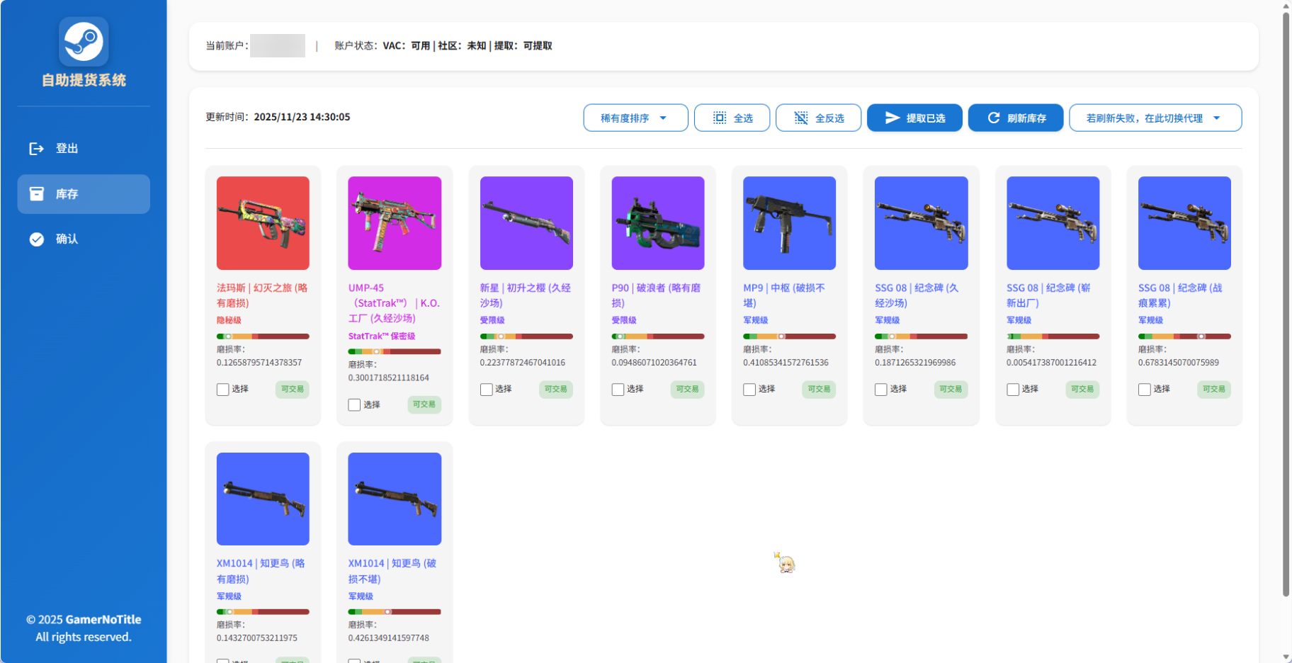 今年做了两套系统,一个是 Steam 租号管理系统,一个是 Steam 账号库存提取系统